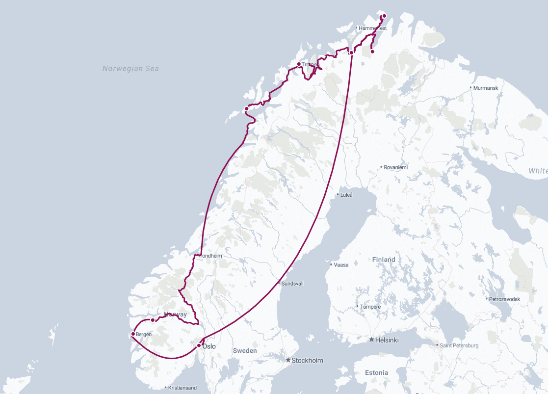 Private transportation in Northern Norway on Days 10, 11, 12 and 13