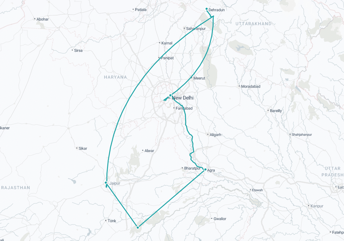 - Domestic flights: Jaipur → Dehradun → Delhi (economy class, checked baggage included)